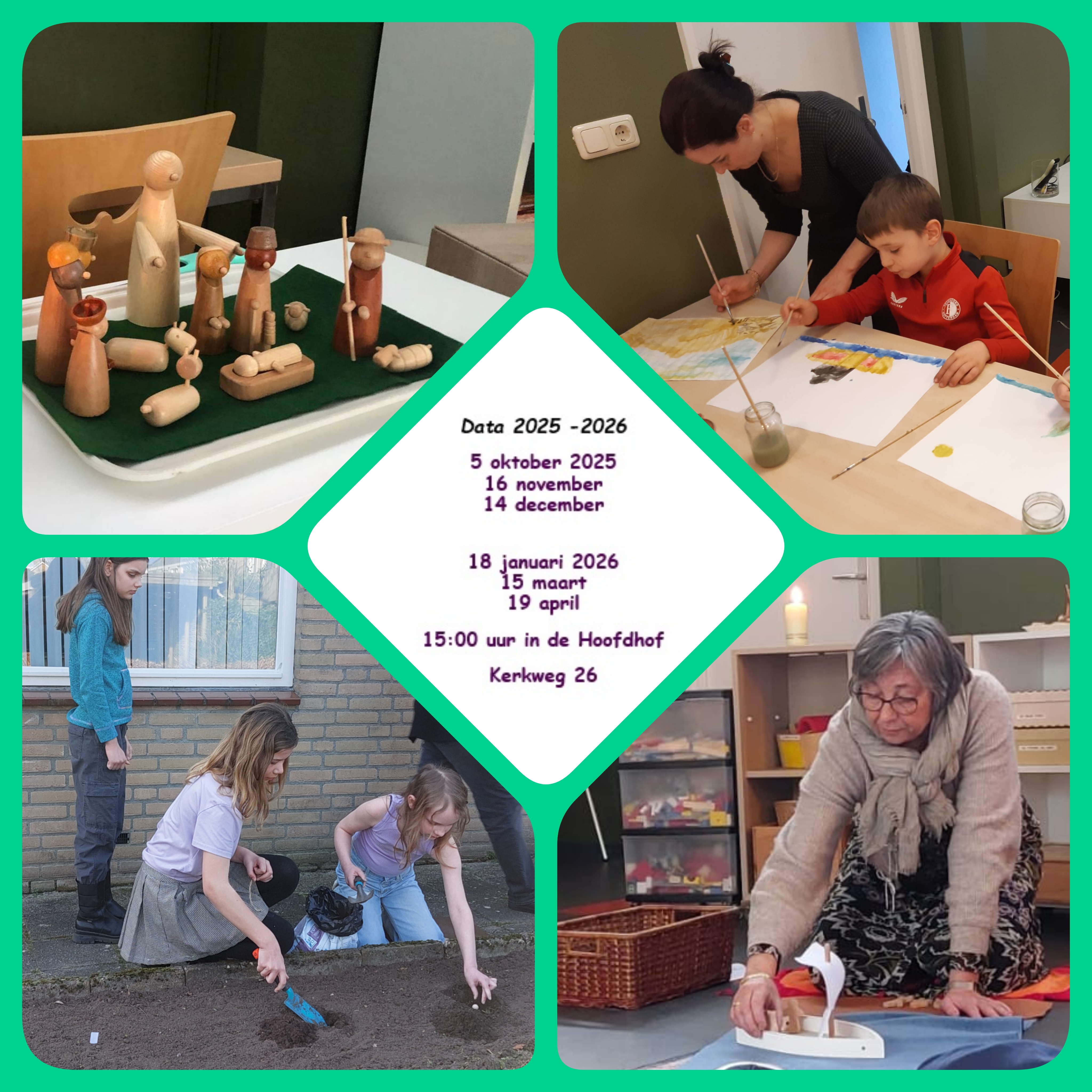 Laatste Land van Verwondering dit seizoen ![]() Afgelopen zondag, 9 maart 2025, hebben we een fijne Land van Verwondering gehad. We hoorden over het verhaal van Pasen. Hebben bloembommetjes gepland in de tuin van de kerk en bakjes gemaakt van klei. We hopen jullie weer te zien in het najaar. Marianne, Margriet en Ineke |