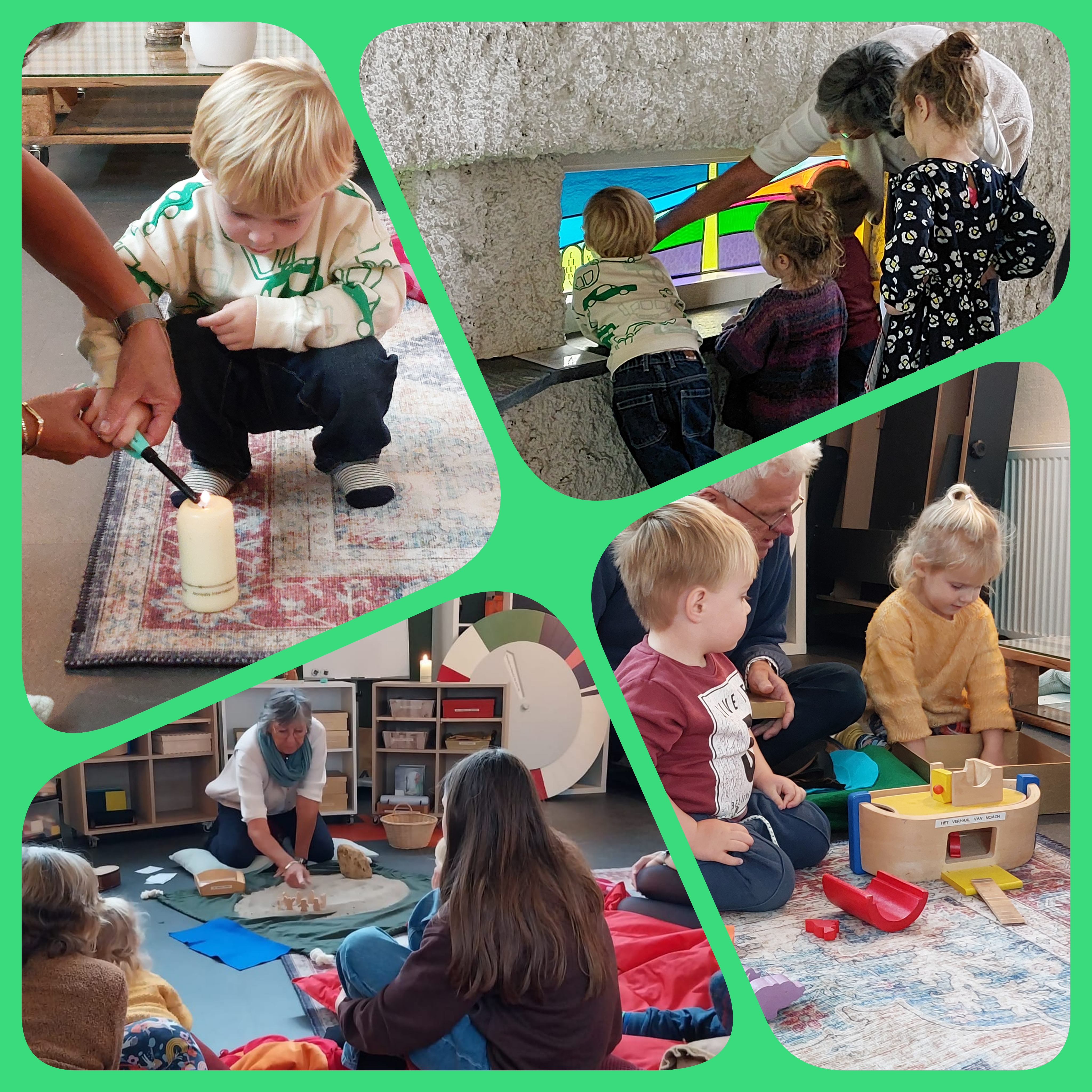 In de Protestantse gemeente De Hoofdhof (die puntige kerk in Berkum) is in 2020 een creatieve verhalenvertelplaats van start gegaan. Onder de naam ‘Land van Verwondering’ geven we Bijbelverhalen door aan de kinderen. Dit doen we op de creatieve en visuele manier van Godly Play. De kinderen gaan daarbij zélf nadenken over de verhalen en creatief aan de slag.
